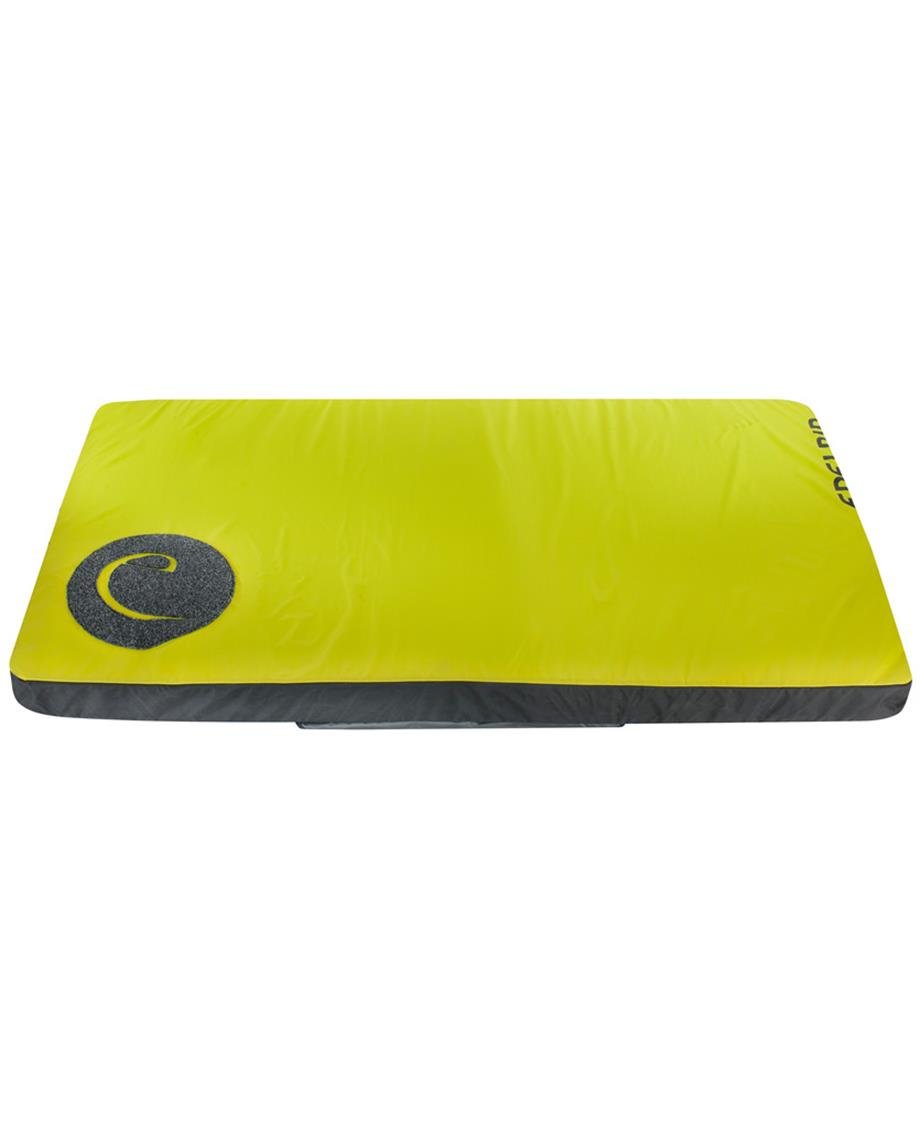 Korkutucu yüksekten atlamalarda bile yumuşak inişler için Megacrashpad (Mega Darbe Emici) Tırmanma ayakkabıkarını temizlemek için EDELRID Halısı Bükümsüz kesintisiz Taco konstrüksiyon Daha iyi yumuşatma özellikleri için iyileştirilmiş, dört katlı köpük tabaka Aşınma ve neme karşı alt tarafta dayanıklı balistik naylon malzeme ve yanlarda koruma Yüksekliği ayarlanabilir omuz kayışlı ve bel kemerli değişken taşıma sistemi Tahrip edilemez alüminyum kancalı kapanış ve geri dönüştürümüş halat artıklarından taşıma sapları