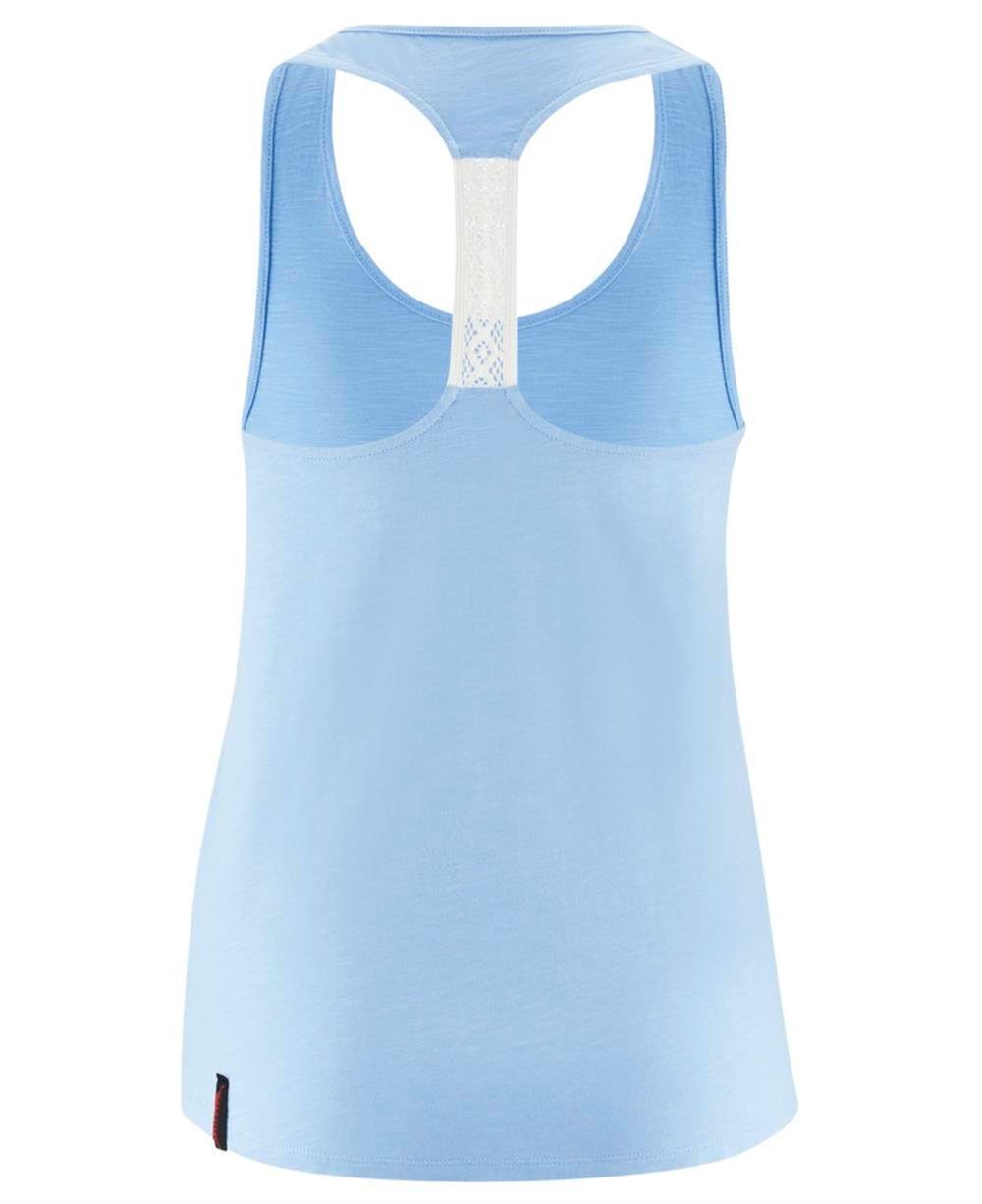 Arkası dantelli, göğsünde büyük grafik baskılı, organik pamuklu, yarışçı sırtı kolsuz üst.